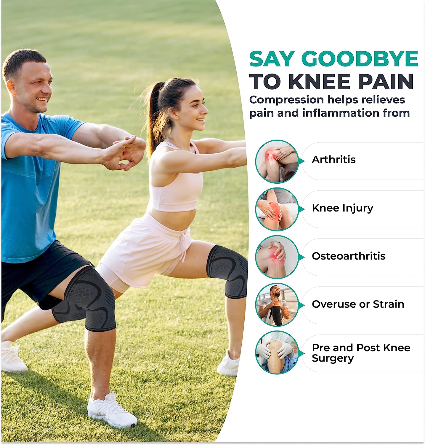 - No Pill & Injection Relief: Avert pain, inflammation, and sports injury with our knee braces for knee pain. It offers optimum support for people with meniscus tear, ACL, arthritis, and post-surgery swelling